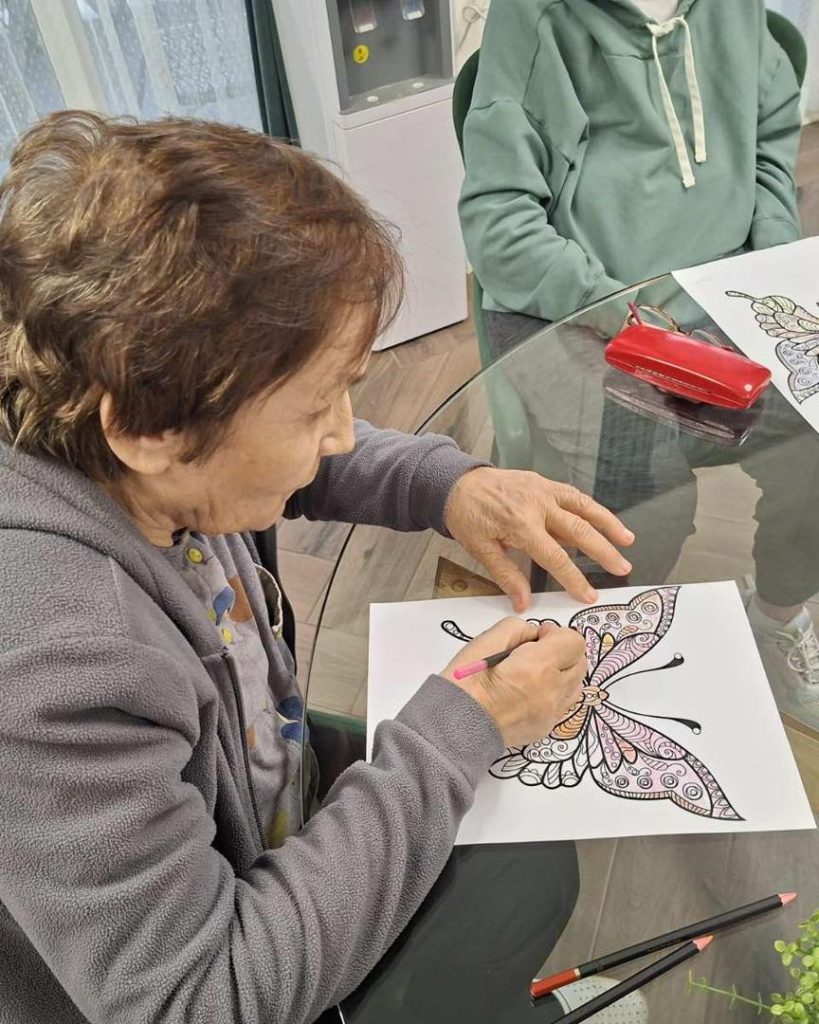 We wonder how some residents manage to color so precisely without glasses!![]()